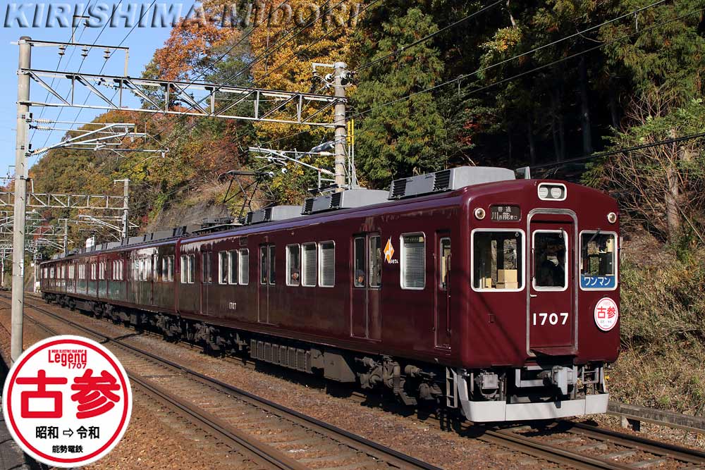 | ▲能勢電鉄 1707F(1700系) 妙見線 2025.11 そして、こちらは川西能勢口駅方面に掲出されていたデザインです。 |