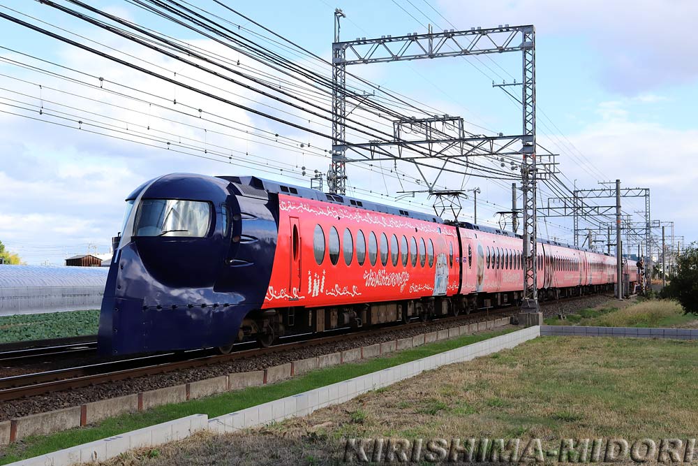 | ▲南海電鉄 特急「ラピート」号 本線 2024.11 天気に泣いた日のオールグリーン編成の特急「サザン」を撮ったついでに、グローバルボーイズグループ「INI」の WINTER SINGLE『THE WINTER MAGIC』とのコラボラッピングを施した「マジラピ」号も撮っておきました。 でも、こちらも肝心な時に太陽は雲の中へ・・・。 このラッピングは10月14日(火)〜来年1月中旬頃までの予定です。 |