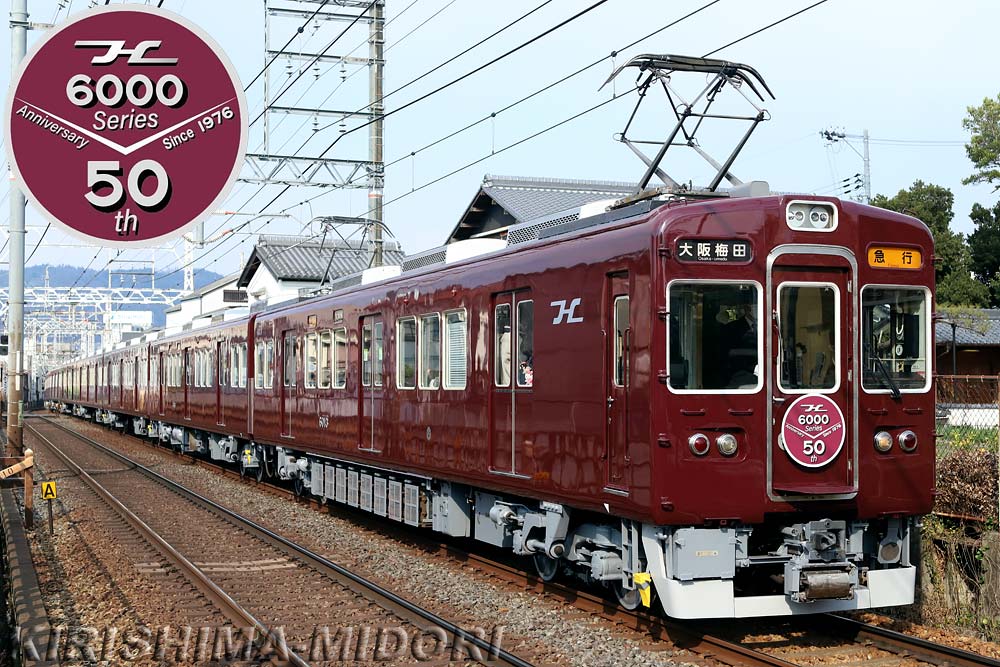 | ▲阪急電鉄 6013F(6000系) 宝塚線 2026.1 阪急電鉄6000系がデビュー50周年を迎えることを記念して、宝塚線で運行中の6000系1編成を マルーン1色のみの塗装にして車体側面にはHマークと旧社章を掲出し、1月15日(木)から運行を開始しました。 期間は次回検査入場までのようです。 また、これにあわせて記念ヘッドマークも11月30日(月)までの間、掲出されています。 |