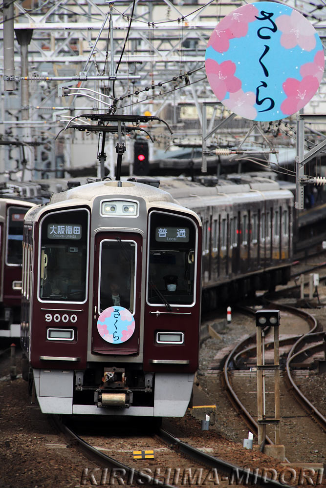 | ▲阪急電鉄 9000F(9000系) 神戸線 2026.3 阪急電鉄さん毎年恒例の「さくら」のヘッドマークが今年からデザインが変わり、 3月2日(月)から掲出されています。 本当は宝塚線の2002Fに掲出されている姿を撮りたかったのですが、 生憎とこの日の運用はなかったので9000系のトップナンバーで妥協することにしました・・・。 因みに、このヘッドマークのデザイン、個人的には曇天の方が映えるように感じました。 |